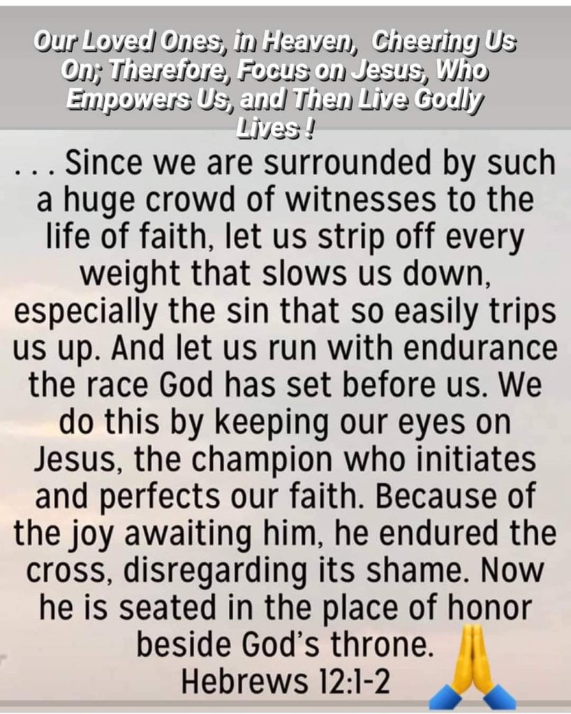 If you read Hebrews 11, you will see stories of the faith filled generations who died in the Lord. After telling their stories about how they lived & died, Hebrews 12 talks about them in Heaven looking back on us, witnessing us, as we live our lives. See below for some power filled Rock-solid Eternal Spirituality Today Ancient Wisdom: