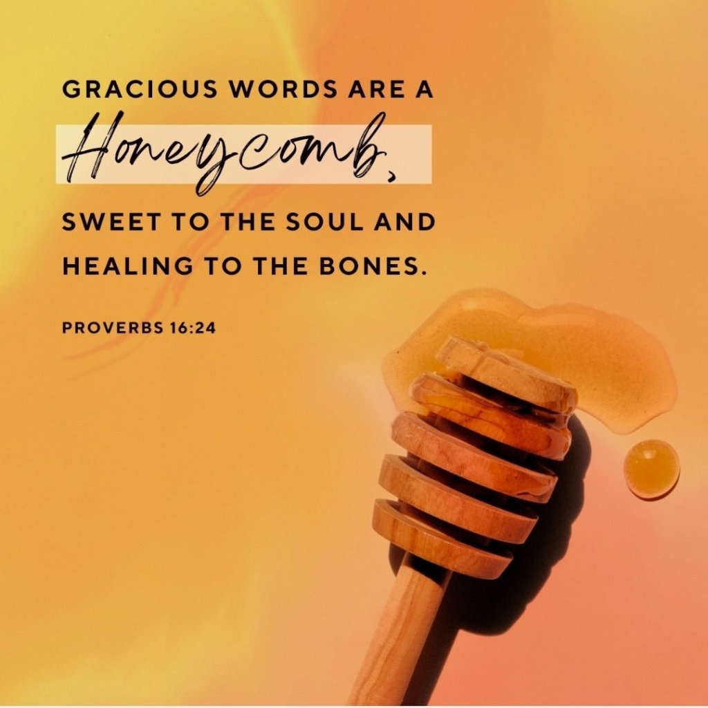 1. Gracious words are sweet words to hear. Ancient Wisdom gives us a word picture that tells us these words are like a honey comb. I have had the privilege 😌 of tasting honey, and a honey comb from a be hive, and this really is a special kind of sweet. Well, the G words are really special as well.