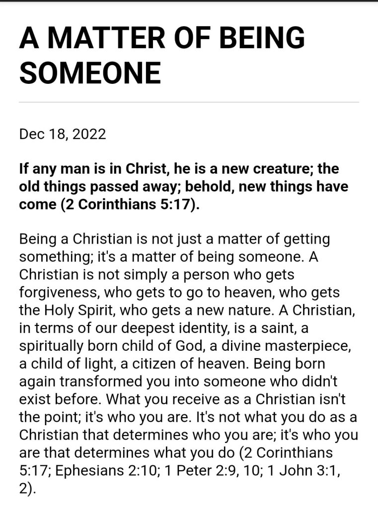 Then, as a new Creation, you will be free to do whatever God calls you to do.