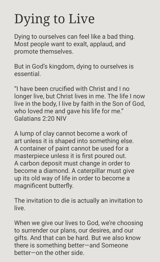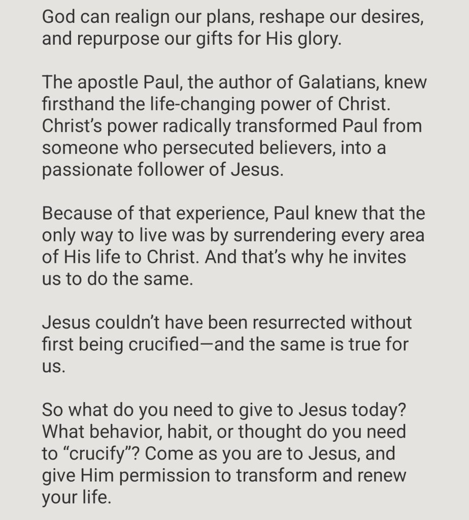This is NOT about living for myself. It’s about realizing I have, indeed, been crucified with Christ; nevertheless, we are fully alive IN Jesus our Lord and Savior. It’s about living a surrendered life, by the faith of the Son of God who loves us and gave HIMself for us.