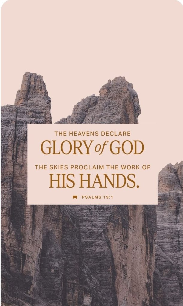 Let God’s Creation speak to you today. Get in a special place where you can see it, hear it, smell it, taste it and touch it. Let God’s glorious declaration wash over you! Let the proclamations of the sky speak to your soul. Let the works of His hands cause you to hold on tight to Him as you rest in the grip of His grace.
