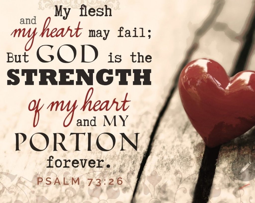 Therefore, I cling to the ancient wisdom of Psalm 73:26. For it tells me my my flesh and my heart may fail. Yes, Congestive Heart Failure is a part of my daily walk. Unlike many of you, who rarely are aware of your heart; however, mine daily — and more often than daily — reminds me it is playing out. It’s getting to where it will stop. It has stopped.