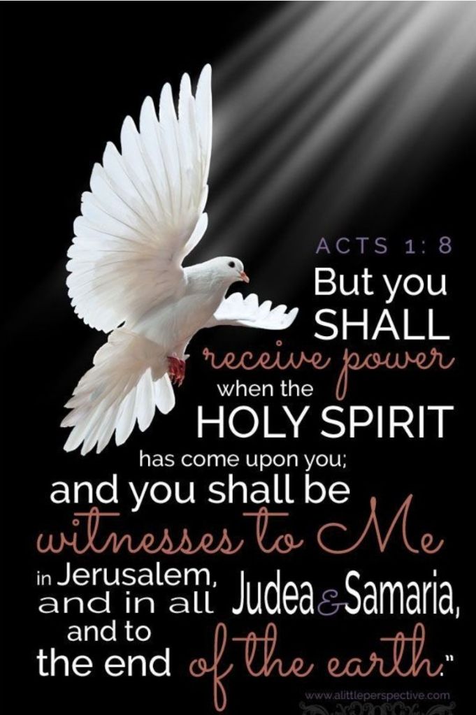 My prayer is that you receive The Holy Spirit. I want God’s power to permeate your life. I want your witness to come from The Holy Spirit, I want you to reach out to your Jerusalem, your Judea, your Samaria and the rest of the world.